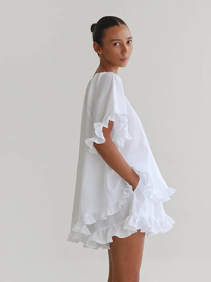 Meet your new cozy crush! The MarthaQiqi Cotton Lounge Set brings together softness, simplicity, and a touch of everyday sweetness. Made from 100% breathable cotton, this short-sleeve nightwear duo keeps you cool and comfy whether you’re stretching, snoozing, or savoring a slow morning. The loose-fit O-neck top and matching shorts give you that effortless “I woke up cute” vibe—perfect for relaxing at home, unwinding after work, or enjoying a lazy weekend. Soft, airy, and oh-so-easy to love!.